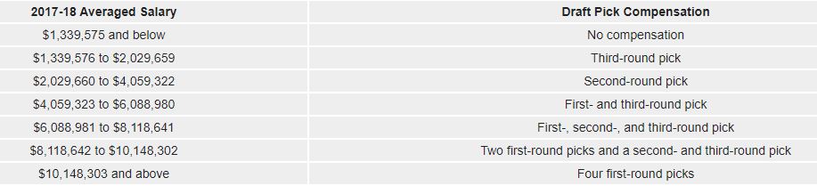 Estes três jogadores têm seus direitos ligados aos Islanders e só podem sair mediante troca ou então ao receberem uma offersheet, uma oferta contratual carregada de uma compensação para a equipe que perderia o jogador. As compensações são definidas de acordo com o salário oferecido ao jogador e a equipe que detém seus direitos, sempre tem a prioridade de cobrir a oferta e manter o jogador. É um mecanismo pouquíssimo usado na liga, porém que voltou a ser usado na última temporada no caso de Sebastian Aho, dos Hurricanes. Abaixo, uma lista das compensações que uma equipe pode receber em uma offersheet, de acordo com a média salarial do jogador: