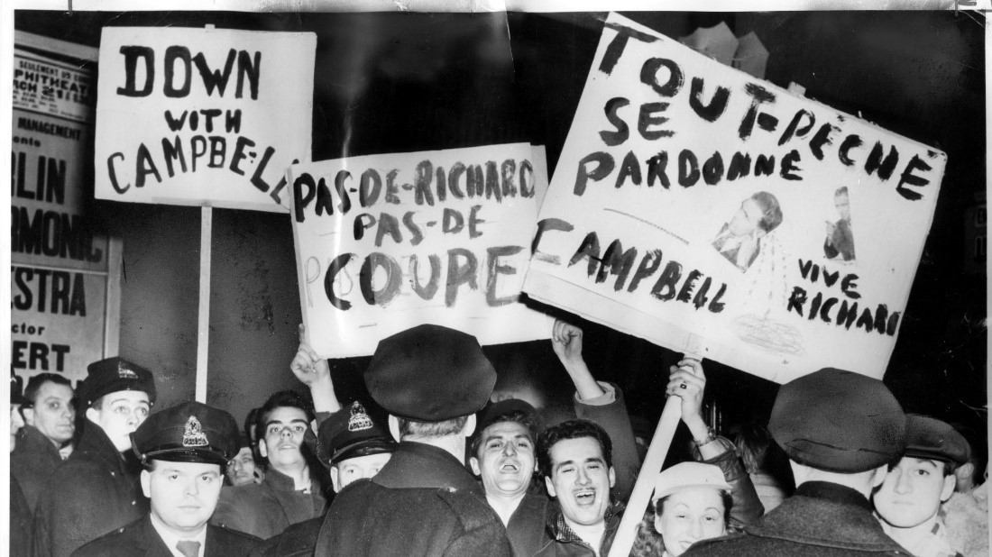 A torcida começou a perder o controle, atirando coisas na direção do presidente. Um torcedor, fingindo ser amigo de Campbell conseguiu driblar a segurança, se aproximar do presidente e agredi-lo por duas vezes, até ser contido pelos seguranças. Logo após este incidente, uma bomba de gás lacrimogênio foi atirada dentro do Forum, causando grande tumulto e a suspensão da partida naquele momento pelo chefe dos bombeiros de Montreal e a evacuação total do Forum, para maior segurança de todos. Campbell se refugiou na clínica dentro da arena esperando a multidão dispersar. A torcida que saía da arena começou a se reunir com algumas pessoas que protestavam do lado de fora e aí começou a famosa “Richard’s Riot”: Ao gritos de “Fora Campbell” e “Viva Richard” a baderna se estendeu e as pessoas começaram a quebrar janelas, atacarem outros pedestres, atearem fogo em barracas pelas ruas, tombarem carros.